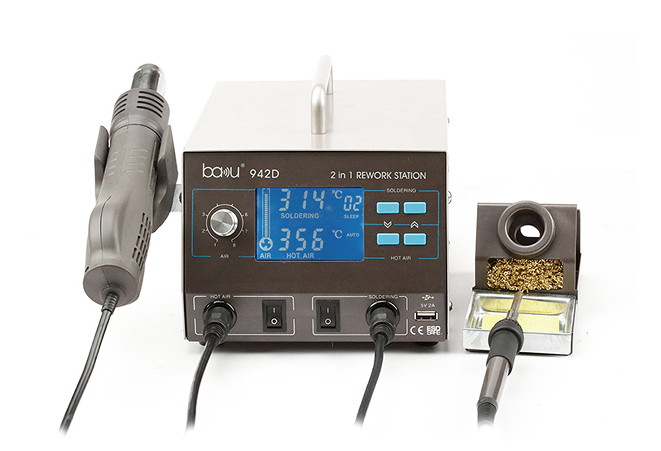 BAKU BA 942D представляет собой компактную анстистатическую паяльную станцию, управляемую микропроцессором. Аппарат предназначен для ремонта радио и мобильных устройств. Он работает в температурном диапазоне 200 - 500 ?C.
