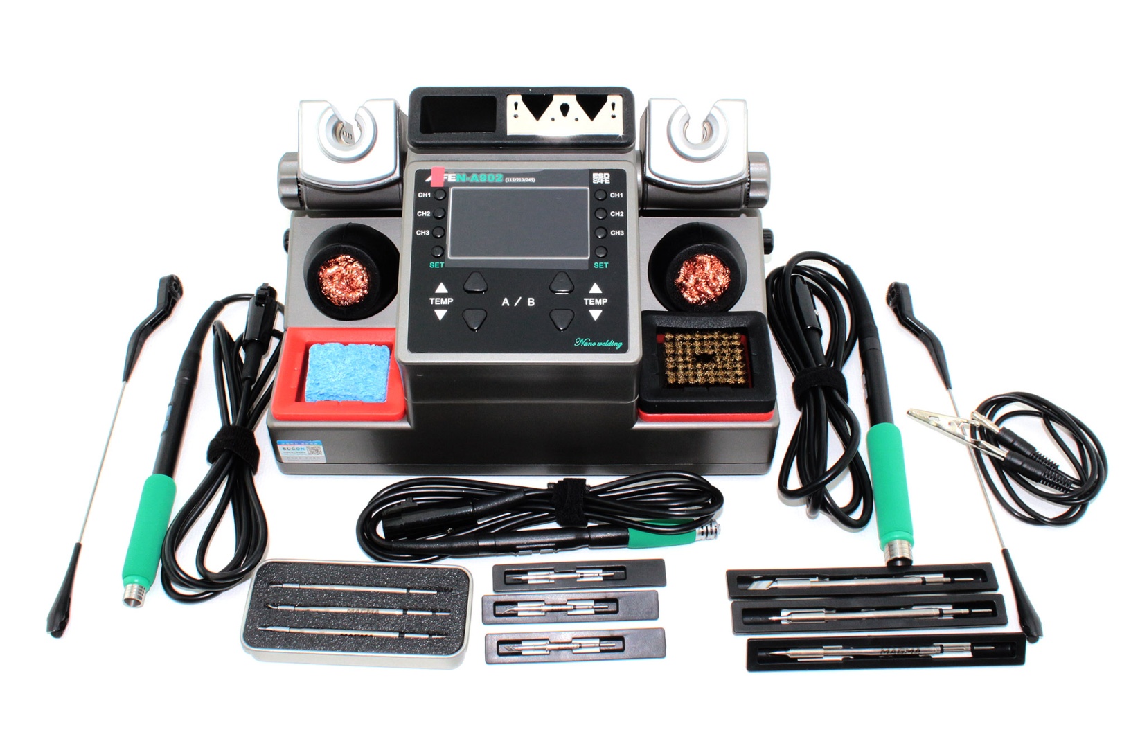 Двухканальная паяльная станция AIFEN 23 A902 с тремя паяльниками.