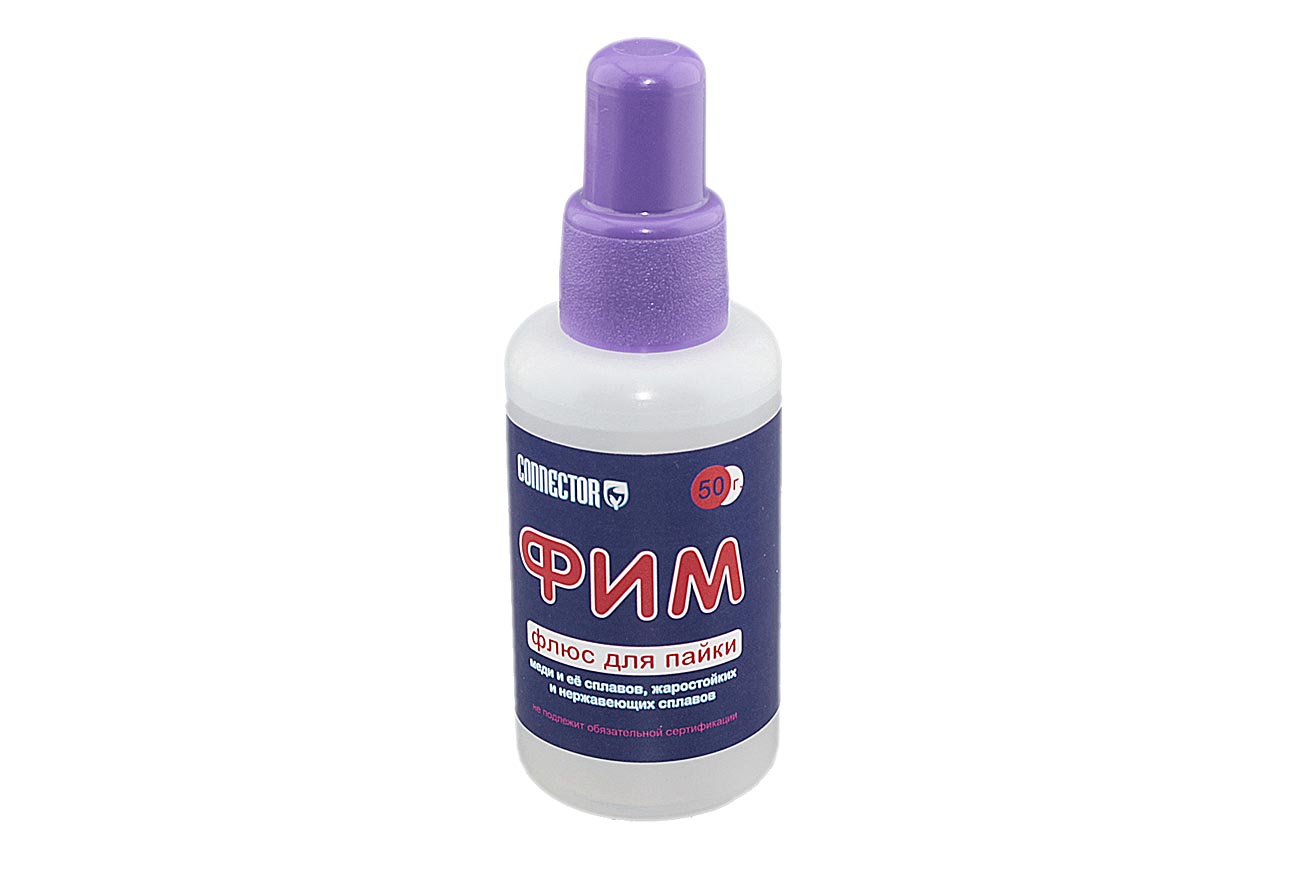 ФИМ - среднеактивный флюс для пайки. Сочетает в себе хорошую смачивающую способность, среднюю активность и умеренную кислотность остатков.