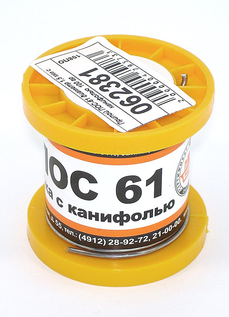 Припой ПОС-61 диаметр 1,5 мм с канифолью 100 гр